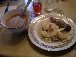 この村一帯の家はマリーさんの家も含めてかつて全部農家だったそうで、豚などの家畜の飼育も盛んだったため、伝統料理も豚や羊などの家畜を使った料理が多いということです。そして、山に囲まれた土地で日光の照射が少なくても、肥沃な土壌で比較的簡単に育つジャガイモが多く栽培されていたこともあり、ジャガイモだけは食べるのに困らない位いつでも手に入ったそうです。ジャガイモを使った料理や付け合せも多いのもこの地方の特徴です。