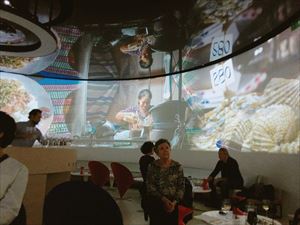 例えば「ポリセンソリアル(多感覚)スペース」と名付けられた部屋でのワークショップでは、円形の部屋の壁360度全てがスクリーンになっており、照明を消した室内で世界各地の市場や風景が投影され、音を聞き、様々な香りが漂うその空間は、まるでその地に誘われるような感覚に陥りながらテイスティングを楽しむことができる造りになっていました。