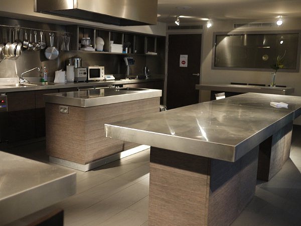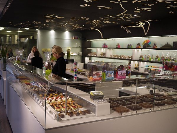 この「アン・ディマンシュ・ア・パリ」は一階にレストラン、パティスリーが併設されています。パティスリーの作業場は外から全て見えるようになっており、緊張感をもって仕事ができる環境です。2階には、月に2回行われる料理・お菓子教室の部屋とバーがあります。このバーではボンボンショコラをおつまみにお酒を提供しています。最近できた新しい店として取材も殺到しているようで、私が訪れた時も日本のテレビ取材が来ていました。