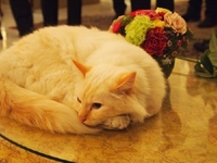 (写真上)2010年より『ル・ブリストル』内で飼われている猫。家族での利用客も多いブリストルにおいて、豪華なパラス・ホテルの雰囲気の中にも温かみを加え、マスコット的存在となっています。