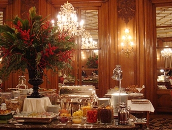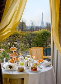 最近は宿泊をしていなくても、前もって予約さえすればほとんどの高級ホテルで朝食を食べることができるようになりました。朝食だけの利用の場合でも、宿泊客と同じメインダイニングでいただくことができます。フランス人の朝食といえばいわゆる"コンチネンタル"と呼ばれる形式の、タルティーヌ(注2)やヴィエノワズリー(注3)といったパン類にコーヒー、紅茶、カフェオレのような温かい飲み物だけのシンプルなものが一般的です。これらの朝食はカフェなど家の外で取った場合でも価格は5ユーロ前後で、10ユーロを超えることはまれですが、パラス級のホテルの多くには、50ユーロ前後でいただける朝食のセットというものがあります。