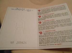食事が終わると、客にはこのようなタグが渡されます。これには仔鴨のルーアン風のレシピのほかに、鴨のシリアルナンバーが書かれています。このナンバーは、このレストランで1880年の創業以来調理されてきた仔鴨の数で、このタグがいわば伝統的なカナール・ア・ルーアネーズを食べたという証拠になるのです。