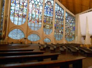 左: ジャンヌ・ダルク教会内のジャンヌ・ダルク像