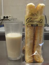 「オルチャタ」は店で出されたそのままをストレートで飲むのがやはり最高ですが、いろんなバリエーションを楽しむこともできます。定番は前述のアルボラヤ Alboraia村の伝統菓子パンである「ファルト Fartó」を浸しながら食べる、「オルチャタ・アム・ファルトンス Orxata amb fartons」。吸水性の高いパンが水分を含んだ状態が好きではない人は浸さなくてもいいそうですが、試してみると、パン自体に砂糖がついているので、意外といける味でした。また、フロートが好みの人に人気なのが、「オルチャタ」にチョコレートアイスを浮かばせた「クバーノ Cubano」。さらに冷たさと爽快感を追求し「グラニサット・ダ・リモナ Granissat de llimona(ナチュラルレモンフローズン)」をブレンドした「パルメラ Palmera」も人気だそうです。他にも各店のオリジナル商品があったりして、どれも一度は試してみたくなります。