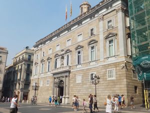 (右)バルセロナ市庁舎の向かいにあるカタルーニャ自治政府