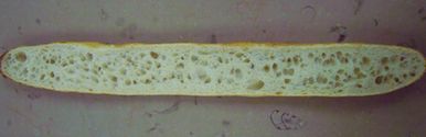 冷蔵発酵を取り入れると、前日に生地を作り、成形までして冷蔵発酵させることでその日の仕事は終了し、当日はパンを焼くだけの作業ですみます。生地は冷やすことにより発酵がゆっくり進み、細かいスポンジ状の内層を作っていきます。また、焼き上がりはミがクリーム色でハチの巣のような均等な気泡となり、よく噛んで食べると穀物の甘味を感じる味わい深いパンになります。
