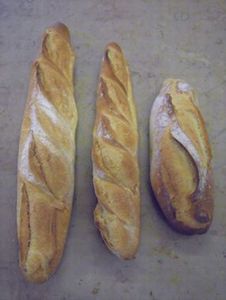 またフランスでは、パンは地元のブーランジュリで買い求めるもので、日本のようにわざわざ評判の高い遠方の店まで買いに行くといったことは一般的ではありません。それだけ日々の食生活と深く結びついた食べ物ということなのでしょう。日本でいうフランスパンは、フランスでは総称してパン・トラディショネル Pain traditionnel(伝統的なパン)と呼ばれ、小麦粉、塩、酵母、水のみで作られる代表的な食事パンです。