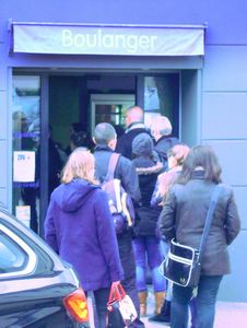 (左)ブーランジュリの休日前。店の外にまでできる行列