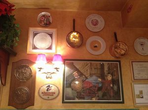 認定条件は大変厳しく、4年に1度審査を受け、全ての項目をパスしなければなりません。その項目は、建物、内装、取引業者、食材(リヨン近郊の産物である事)、調理法(全ての仕事が店で行われている事)、そして出される料理、ワインの産地に至るまで、なんと180項目。全ての項目にパスした店のみが正式な「ブション・リヨネ」と認定され、その証である独自の看板を店先に掲げる事が許されるのだそうです。