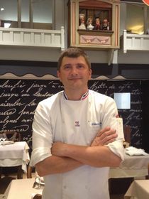 食後、シェフのヴィオラ氏にお時間をいただき、現在ブションがリヨンの人々にとってどういう存在なのか見解を伺いました。ヴィオラ氏によれば、ブションはリヨンのトレードマークであり、観光客のみならず地元の人々にも今でも大変なじみがある存在とのことです。客層は様々で、昔から通い続けているご年配の方や、家族連れも多いとか。