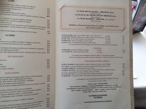(右)ブイヤベースのコースはメニューの一番目立つ右上に。価格は1人前63ユーロと、看板料理だけあって一般のお店よりもお高めのようです