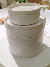 一番上に重ねられた小さな器には付け合わせのじゃがいも。