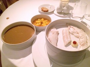 ※サーヴィスはスープの皿と魚の皿の2回に分けられ、魚の皿は客前で取り分けられる。