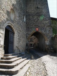 ペルージュはかつてその地理的特徴から軍事上の戦略拠点となり、12世紀には城塞が築かれました。14世紀から16世紀まではサヴォア公国(注3)と隣接するドフィーネ地方の君主たちがペルージュを奪い合い、幾度となく紛争の舞台となりました。その後、フランスとサヴォア公国の間で争われましたが、1601年にフランス領になりました。町を囲んでいる高い城壁は、当時の争いの激しさ、厳しさを物語っているようにも思えますね。