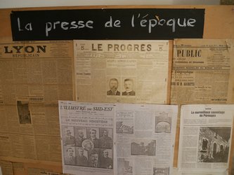 (左)当時の新聞(1911年ごろ)。ペルージュの町の現状などが書かれている