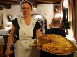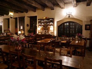 せっかくなので、『オステルリ・デュ・ヴュー・ペルージュ』のレストランで"元祖"ガレット・ペルージェンヌをいただいてみる事にしました。レストランの内装は、古き良きヨーロッパを思わせる造りです。