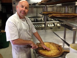 この職人さん、1日に30〜40枚くらい焼くのだそう。16切れ×40枚=640人分!!!凄い数ですが、とっても美味しいから、焼いたそばからみんなのお腹の中に入っていってしまうのでしょうね。