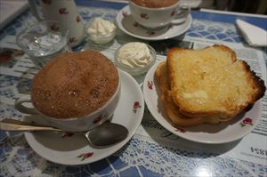 甘いショコラ・ショーにたっぷりバターが塗られたトーストの組み合わせはとても美味しかったです。