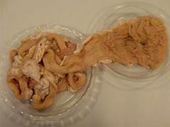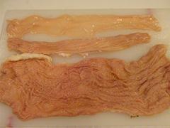 三つの腸を並べてみると、厚さ、幅などが明らかに違うのが良くわかると思う