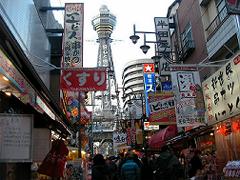 通天閣をのぞむこの界隈には有名、無名、数限りない店が並ぶ。まさに「串かつ天国」