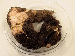 日本で一般に流通しているのは、右のように黒い薄皮をむいた状態のもので、ほとんがオーストラリア産である
