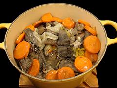 たっぷりのカルヴァドス(りんごのブランデー)とシードル(りんご酒)で煮込んだ「カン風トリップ」はぶどうの育ちにくいノルマンディー地方の代表的な郷土料理で、たっぷり入ったにんじんとお酒からの甘味が癖になる逸品