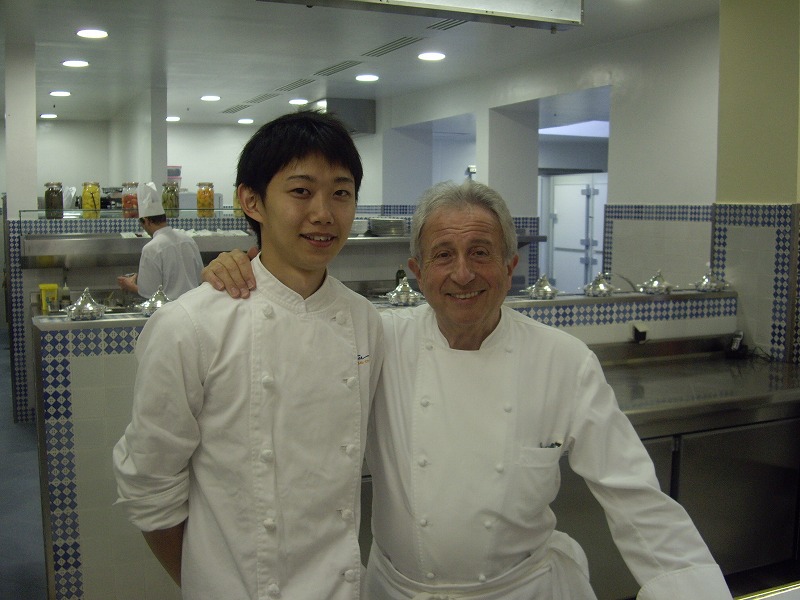私達料理人にしてみればまさに雲の上の存在なのですが、とても気さくで温厚な方です(写真にも、その雰囲気が出ていますよね)。研修中も、お忙しい中、常に笑顔で声をかけてくださいました。