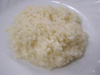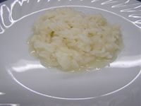 リゾットとは簡潔にいうと、米をバターで炒め、だし汁を足し、仕上げにチーズを入れたものです。