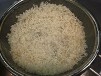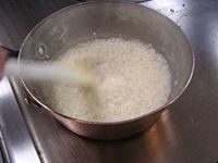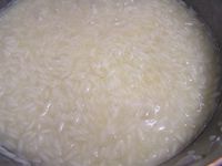 | 同じようにつくります | 煮始めはジャポニカ種の米と同じような状態でした |