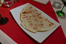 塗り、玉ねぎとベーコンを散らして高温のオーブンで焼いたものです。