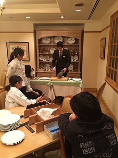 技術研究所では、料理やお菓子の他にサーヴィスの授業があります。