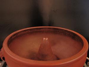 汽鍋(チィグオ)と呼ばれています。円錐形の中心に穴が開いています。