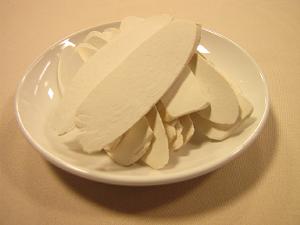 ・山芋の乾燥 中国語で「淮山(ホワイシャン、広東語でワイサン)」と言い、山芋を乾燥させたもの。気力充実に効能があるとされ、下痢、咳、頻尿など幅広く利用されており、更年期障害や心臓病によいとされるDHEA(ヒトの体内に存在するホルモンの略称)が含まれています。そして、コンドロイチンが皮膚の乾燥を潤したり、肌の疲労を防ぐなどの美肌効果もあるようです。