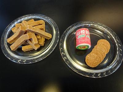 写真左は山楂条(シャンヂャーティヤオ)、右は山楂餅(シャンヂャーピン)
