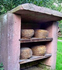 六角形のマークの中央は、藁や蔓で編んだ養蜂籠(Bienenstock:ビーネンシュトック)。