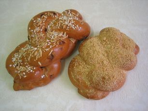 左は、レーズン入りの2本編みと、シュトロイゼルを振った3本編み。