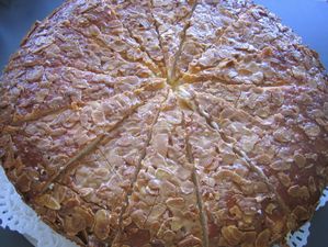 ブッタークーヘンは、ヘーフェタイクの上にバター(Butter:ブッター)と砂糖(Zucker:ツッカー)、アーモンド(Mandel:マンデル)をトッピングしたブレッヒクーヘンである。
