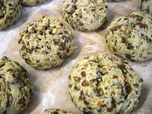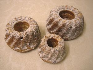 ドライフルーツやアーモンドの入ったリング形の発酵菓子で、典型的な畝のある、溝彫りを施した型に入れて焼く。