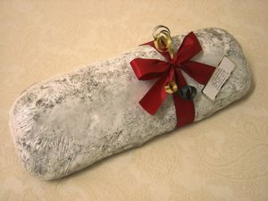 殊の外クリスマス時期に流通する、特徴的な形のシュトレンで、長期保存が可能である。