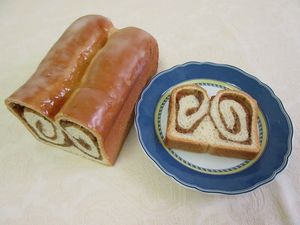 フィリングを塗り広げて巻き込み、型に入れて焼いたモーンシュトレン。