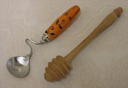 ハチミツを容器からすくうためのハチミツ用スプーン(Honiglöffel:ホーニッヒレッフェル)は、「ホーニッヒヘーバー(Honigheber)」や「ホーニッヒアウフネーマー(Honigaufnehmer)」とも呼ばれる。