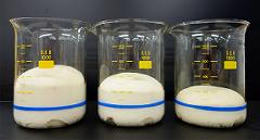 O:じゃあちょっとここで塩が入っていない生地、2%入っている生地、4%入っている生地を使って、1時間後の発酵具合を比較してみましょう。