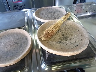 テスタローリは、小麦粉を水で溶いた生地を「テスト」という蓋付きの鋳鉄の浅鍋で焼きます。昔はテラコッタ製のテストを用い、炭や薪の上に脚付きの土台を置き、その上に浅鍋の部分を置いて生地を流しいれます。そして蓋をし、上から熱い炭や灰をかぶせて焼き上げます。焼きあがったら切り分けてゆで、ペスト・ジェノヴェーゼと合わせるのが定番のようです。