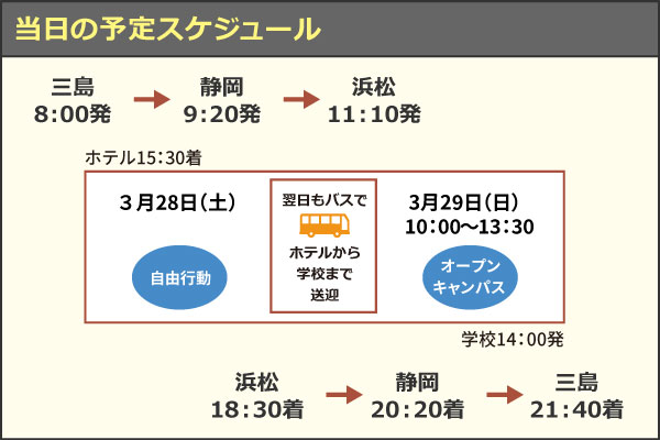 【3/28・29 開催 オープンキャンパス】静岡県 宿泊バスツアー(大阪校)