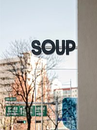 점포명 PUOS는 'SOUP'을 거꾸로 쓴 것이라고 해요. 스프를 다른 관점에서 보고, 현대인의 새로운 식문화를 만들어 가겠다는 브랜드의 목표가 담겨 있습니다.