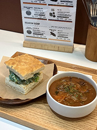 실제로 PUOS의 스프를 맛보니, 재료 본연의 맛이 살아 있는 깊은 감칠맛이 느껴졌고, 속이 편안한 한 끼 식사라 더욱 만족스러웠습니다. 스프의 농도는 밀가루 대신 고구마, 당근, 감자 등을 활용해 조절한다고 하는데, 이렇게 한층 더 건강하게 완성된 스프를 맛보니, 정성과 기술이 느껴졌습니다.