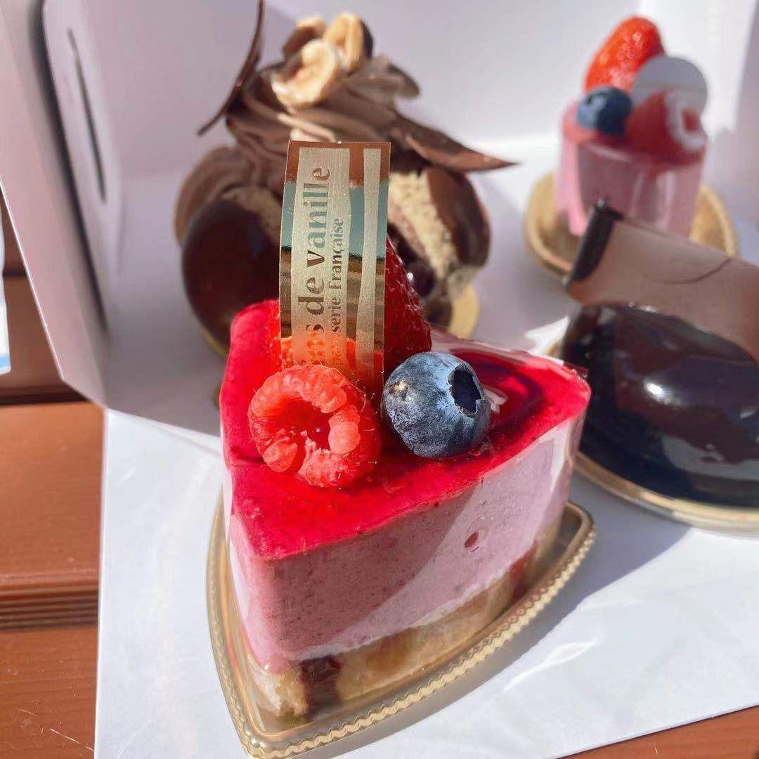 里面最喜欢的是一款名为Floral的慕斯蛋糕。外层是泰莓,一