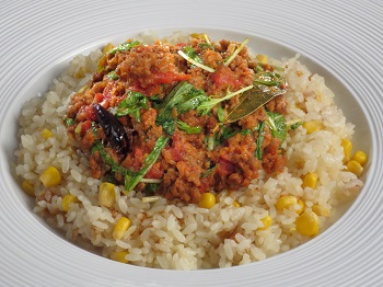 コーンの入ったピラフの心地良い甘みとのバランスも抜群。