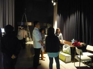 収録中のスタジオ、カメラの後ろは様々な役割の方で結構いっぱい。