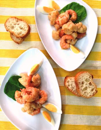 木曜日は西洋料理・小池先生。「海老とカリフラワーの温サラダ」